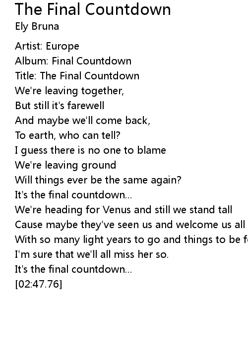 We Have got 15 picture about The Final Countdown Letra images, photos, pictures, backgrounds, and more. In such page, we additionally have number of images out there. Such as png, jpg, animated gifs, pic art, symbol, blackandwhite, pics, etc. If you're searching for The Final Countdown Letra theme, you have visit the ideal site. Our page always gives you hints for seeing the highest quality picture content, please kindly hunt and locate more enlightening articles and pics that fit your interests.